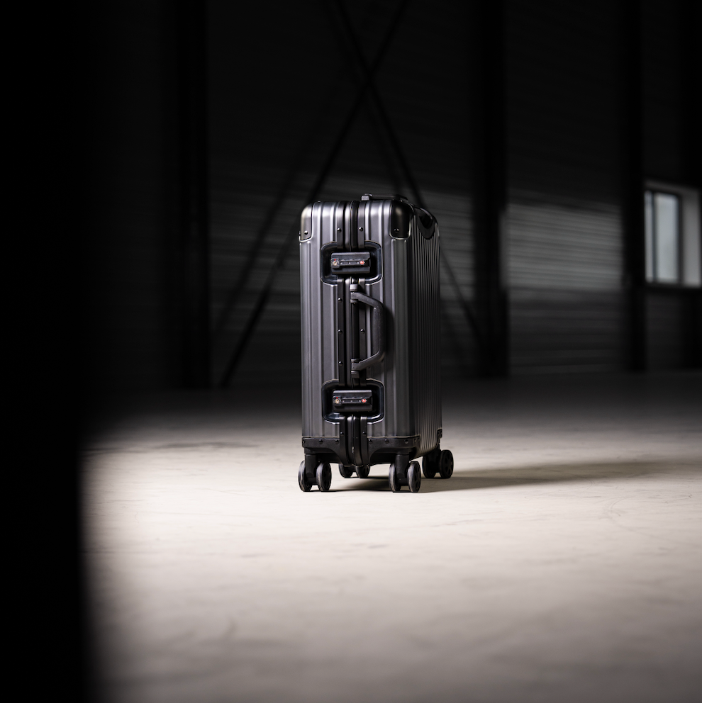 Vervaardigd uit hoogwaardig aluminium. Sterk, licht en elegant. Het materiaal beschermt optimaal en ontwikkelt met de tijd een uniek karakter, passend bij elke reis.