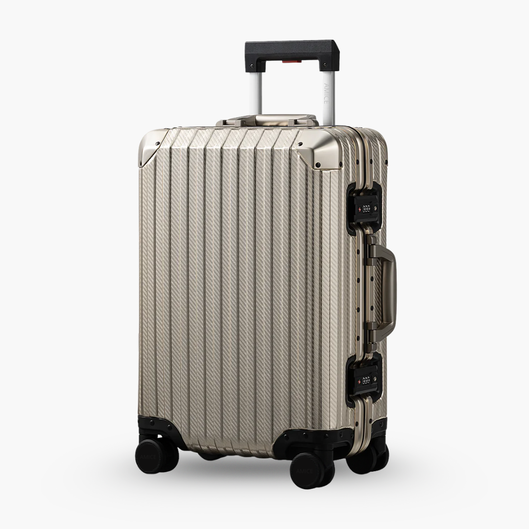 De AMICE Aluminium Reiskoffer is ontworpen voor de veeleisende reiziger die zowel stijl als functionaliteit zoekt. Gemaakt van hoogwaardig aluminium, biedt deze koffer een robuuste bescherming voor je bezittingen. Het ritsloze sluitsysteem en de dubbele TSA-goedgekeurde sloten zorgen voor maximale veiligheid, terwijl de 360° wielen zorgen voor een soepele en stille rit door luchthavens en steden.