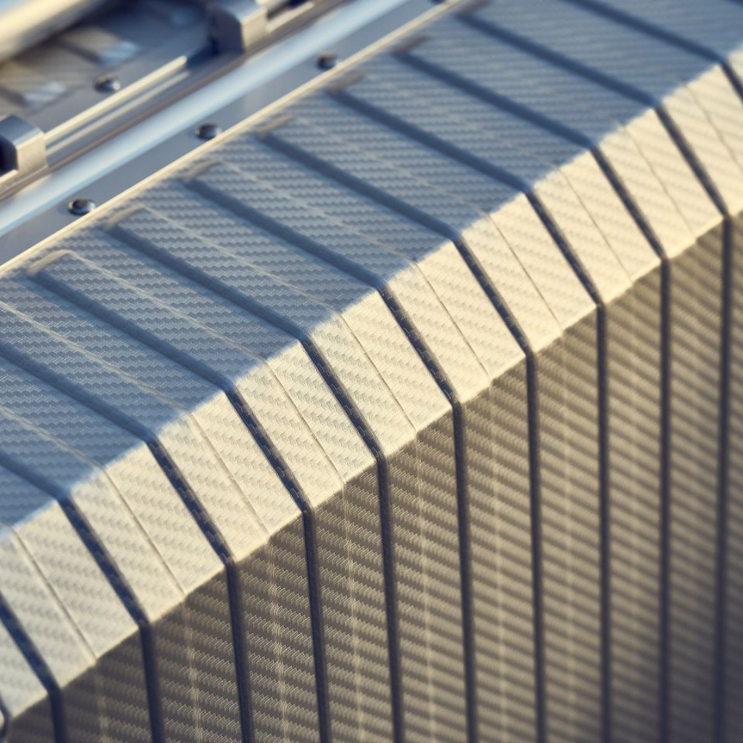 Vervaardigd uit hoogwaardig aluminium. Sterk, licht en elegant. Het materiaal beschermt optimaal en ontwikkelt met de tijd een uniek karakter, passend bij elke reis.