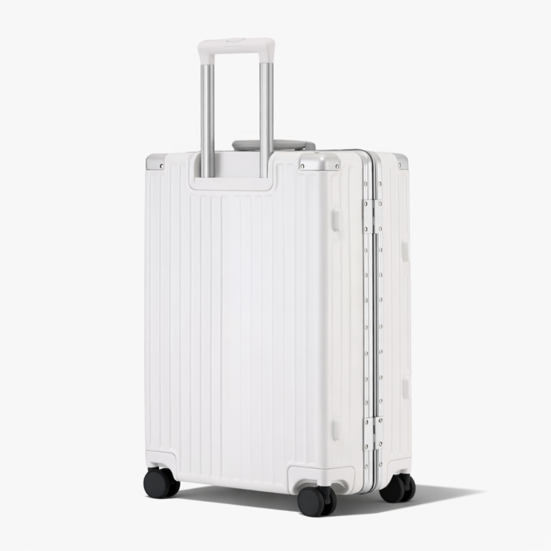 De stille 360-graden wielen zorgen voor een moeiteloze en stabiele voortbeweging in elke richting. Ontworpen voor maximale souplesse en minimale weerstand, bewegen ze fluisterstil met je mee, van luchthaven tot hotellobby en bieden ze ultiem comfort en volledige controle, ongeacht het tempo van je reis.