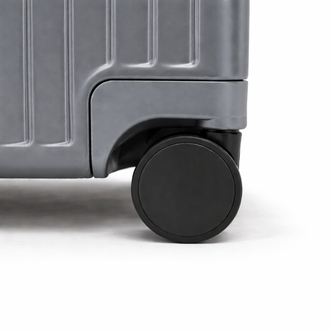 De stille 360-graden wielen zorgen voor een moeiteloze en stabiele voortbeweging in elke richting. Ontworpen voor maximale souplesse en minimale weerstand, bewegen ze fluisterstil met je mee, van luchthaven tot hotellobby en bieden ze ultiem comfort en volledige controle, ongeacht het tempo van je reis.